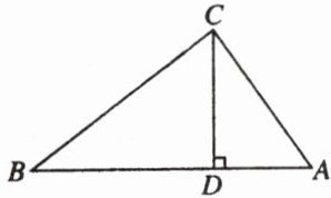 证明:因为$CD$是$AB$边上的高,所以$\angle BDC = \angle CDA = 90^{\circ}$。