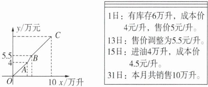 $15$日进油$4$万升,成本价$4.5$元/升,$31$日共销售$10$万升。