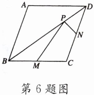 6. 如图,已知菱形$ABCD的两条对角线分别为6和8$,$M$,$N分别是边BC$,$CD$的中点,$P是对角线BD$上一点,则$PM+PN$的最小值是