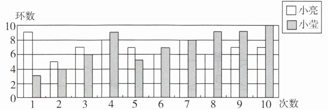 9. 小亮和小莹自制了一个标靶进行投标比赛,两人各投了$10$次,如图是他们投标成绩的统计图.
