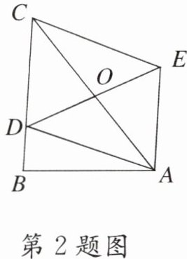 2. 如图,在$Rt\triangle ABC$中,$\angle B = 90^{\circ}$,$AB = 3$,$BC = 4$,点$D在BC$上,以$AC为对角线的所有□ ADCE$中,$DE$最小的值是(
