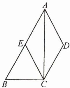 又因为四边形$AECD$是菱形,所以$AE = EC$,则$EB = EC$,所以$\angle B = \angle ECB$。