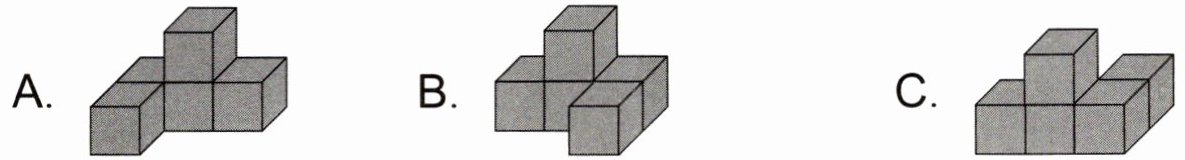3. 由5个小正方体搭成的立体图形,从正面看到的图形是