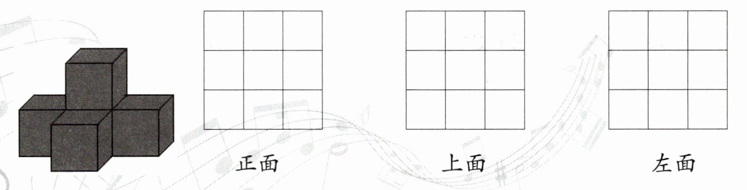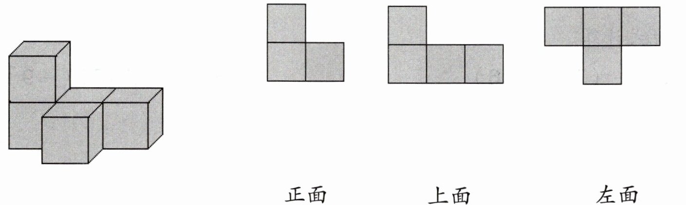 2. 摆一摆,画出该图形从正面、上面、左面看到的立体图形的形状。