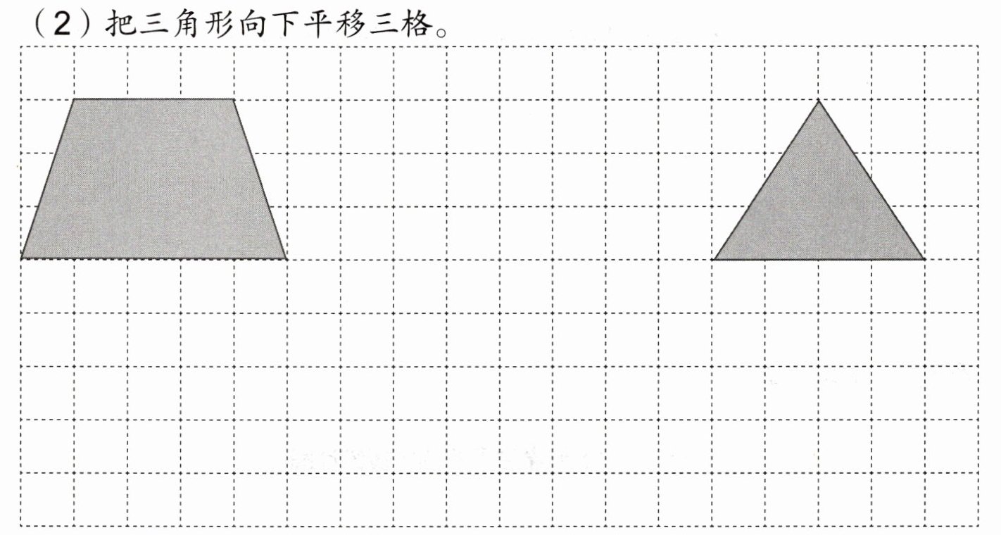 综上,按照上述方法即可完成$(1)$**梯形先向下平移两格,再向右平移三格**和$(2)$**三角形向下平移三格**的图形绘制。