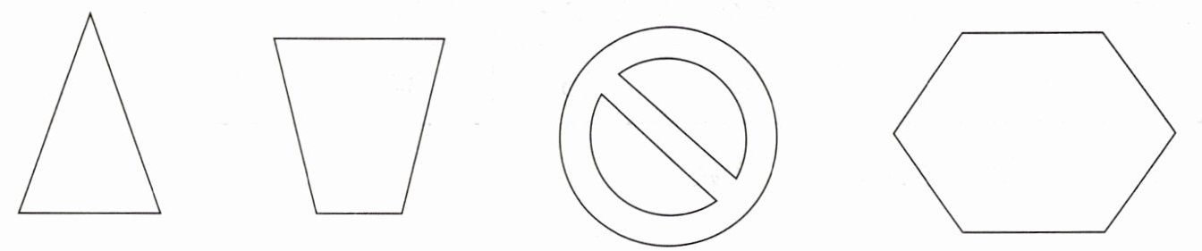 综上,答案依次为:等腰三角形$\boldsymbol{1}$条对称轴;等腰梯形$\boldsymbol{1}$条对称轴;禁止通行标志$\boldsymbol{1}$条对称轴;正六边形$\boldsymbol{6}$条对称轴 。