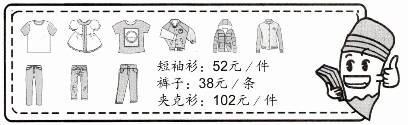 元。(2)如果给每人各买一件短袖衫和裤子,一共要付多少元?