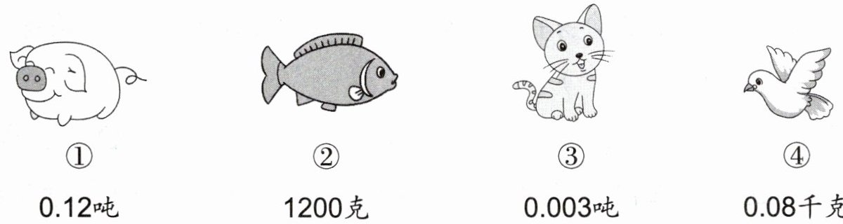 4. 把下列各动物的体重按从重到轻的顺序排列。(用序号表示)