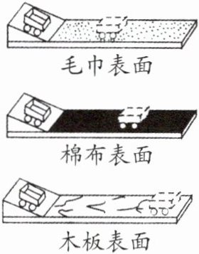 8. 如图所示,在水平桌面上铺粗糙程度不同的物体,让小车自斜面顶端同一高度处从静止开始下滑,小车在不同表面运动的距离见下表,通过探究,我们可以反驳如下说法中的哪一条(
