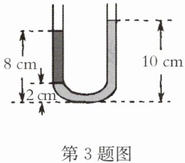 3. 如图所示为水(右)和另一种液体在U形管中静止时的数据,则另一种液体的密度是