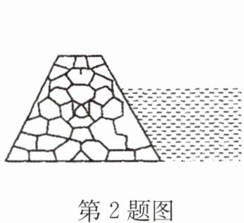 2. 如图是水坝的截面图,水坝筑成下宽、上窄的形状,是考虑到水对坝体侧面有