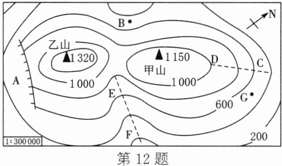 m。(5)如果要从B、G两处爬到甲山顶,那么选择从