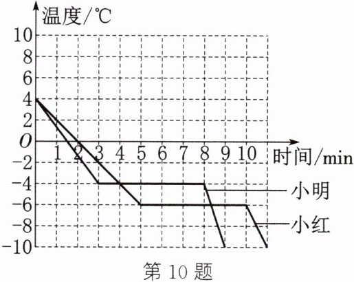 10. 某综合实践活动小组制作一个医用冷藏盒时,不知道给药品降温用冰好,还是用盐水结成的冰好。他们动手测定了盐水的凝固点。