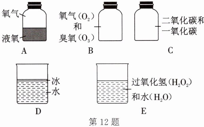 12. 下列分别盛有不同物质的容器中,所盛物质属于单质的是