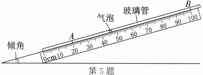 5. 小科设计实验来探究气泡的运动规律。如图所示,他在细玻璃管中注入水,管中留一个小气泡,将玻璃管翻转后,观察气泡的运动情况。
