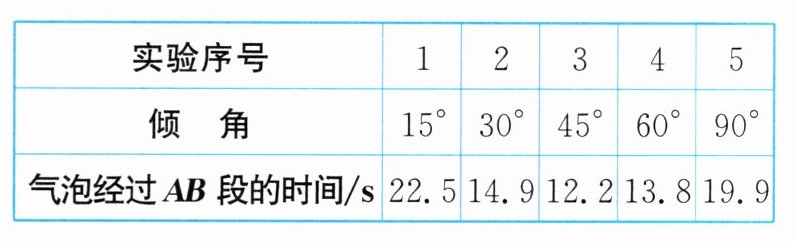 (2) 分析表中的数据,可以发现气泡运动的快慢随倾角的变化关系: