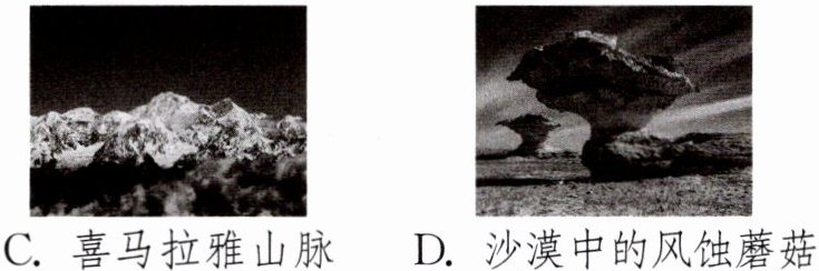 12. 下列图示的地貌中,其形成的主要作用力不同于其他三者的是 (