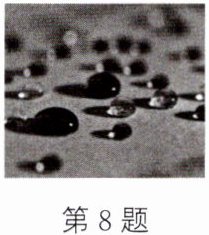 8. 如图所示为由微颗粒(1~50纳米)制备而成的新型防菌“纳米纸”,“纳米纸”的表面细菌无法停留且油水不沾。下列与此现象有关的判断,正确的是(