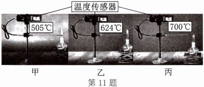 11. 酒精灯是实验室中常用的加热仪器,小科对酒精灯的使用及温度做如下探究。