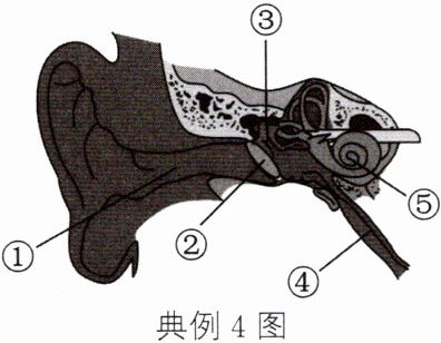 典例4 如图所示为耳的结构示意图,其中放大振动并向内传导和有听觉感受器的结构分别是(