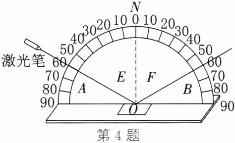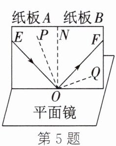 5. (宁波慈溪期中)如图所示,$EO$、$OF$分别为入射光线和反射光线,为验证“光路可逆”的原理,则下一步实验中,入射光线的路径应为(