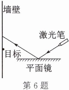 6. 如图所示,若要让反射光射中目标,在激光笔不动的情况下,可将平面镜(