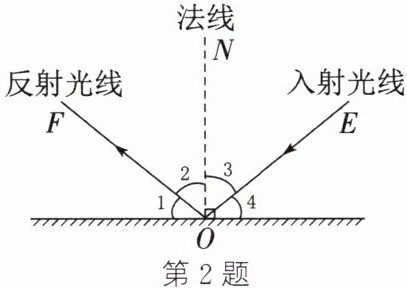 2. (宁波余姚期中)如图所示,一束光斜射到平面镜上,其中反射角是(