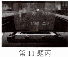 ____。(4) 小红联想到爸爸开车时,会用到HUD(抬头显示)投影模式进行导航,将手机置于汽车前挡风玻璃下方,就可以将导航的信息通过前挡风玻璃投影到正前方,避免因低头看手机而造成事故。如图丙所示,HUD投影模式显示右转,那么在手机上显示的应该是(