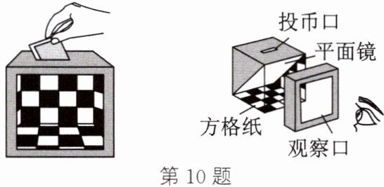 10. 小清用正方体纸箱、黑白方格纸、平面镜等器材制成如图所示的“储币魔箱”。