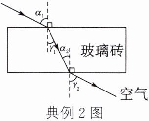 典例2 一束光从空气中斜射向玻璃砖并穿过,其光路如图所示。下列关于四个角的大小关系,正确的是(