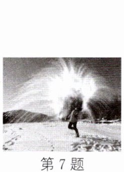 7. 新情境 地域特色 2024年初,哈尔滨火爆全国,很多游客在寒冬时节的户外体验了“泼水成冰”的奇观,如图所示。“泼水成冰”的原理是水在极端低温环境下迅速蒸发形成水蒸气,水蒸气在冷空气中直接变为小冰晶。下列对此现象表述正确的是(