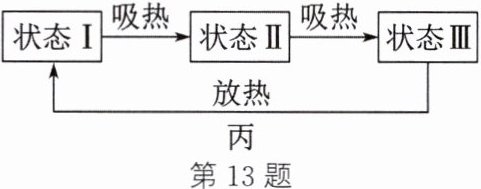 12. 新素养 模型构建 如图所示为反映某种物质三种状态的微观模型,某物质由图甲的状态直接变为图丙的状态时,发生的物态变化为