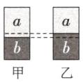 本题可借助图像巧解。根据题意,可以画出如图所示的简图,从简图可以看出,甲、乙两个烧杯中两条虚线以外部分的液体总质量相同。因$b$的密度大于$a$的密度,导致虚线之间的部分乙烧杯的液体质量大于甲烧杯的液体质量,则乙烧杯中液体的总质量大于甲烧杯中液体的总质量。
