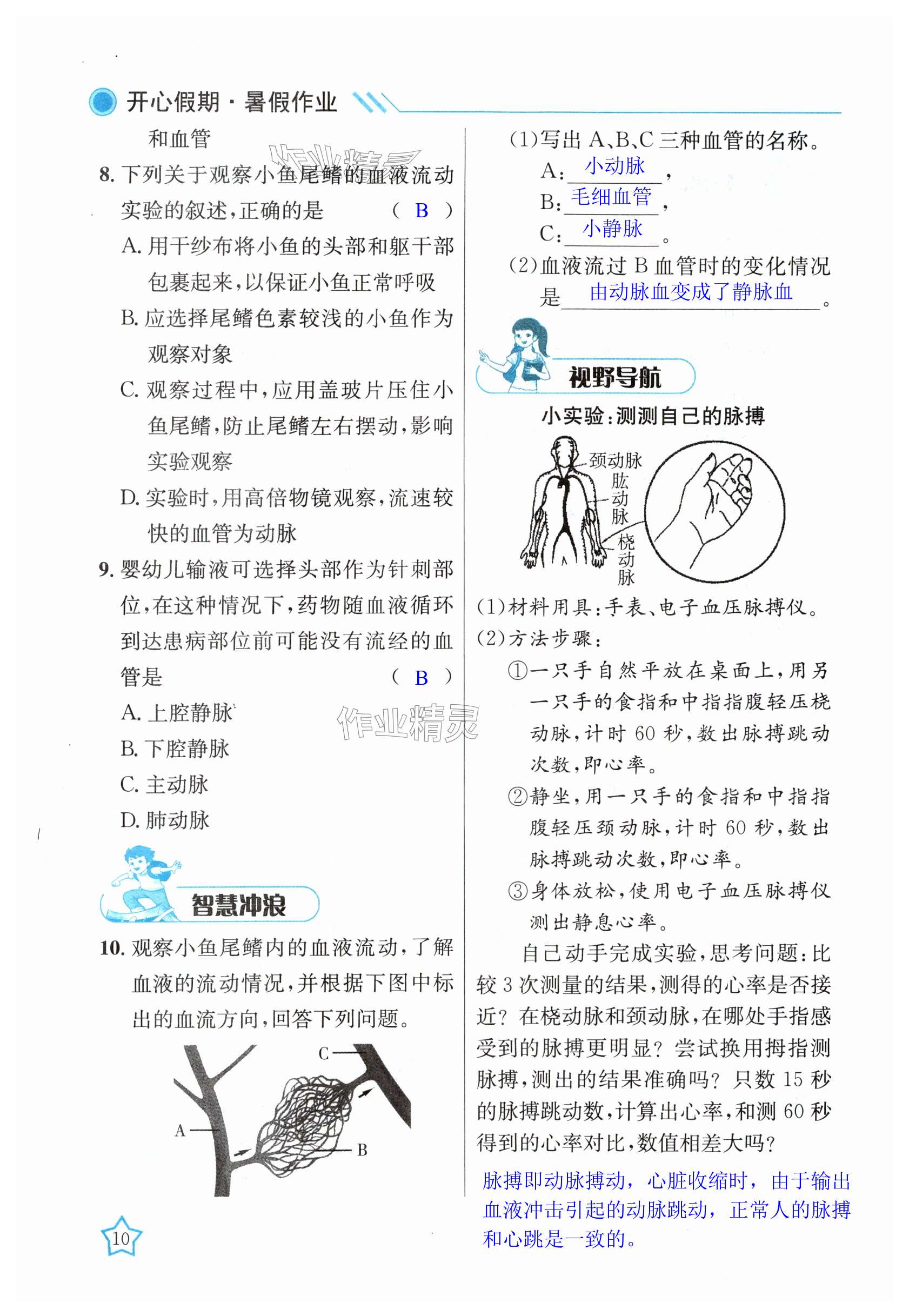 2025年开心假期暑假作业七年级生物北师大版武汉出版社