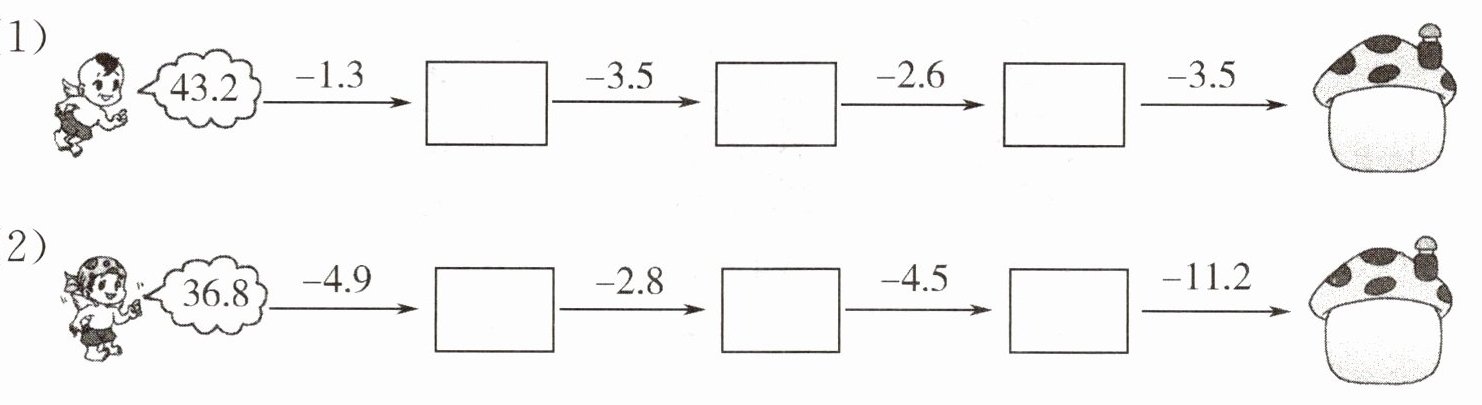 1. 计算$43.2 - 1.3 = 41.9$;$41.9 - 3.5 = 38.4$;$38.4 - 2.6 = 35.8$;$35.8 - 3.5 = 32.3$。