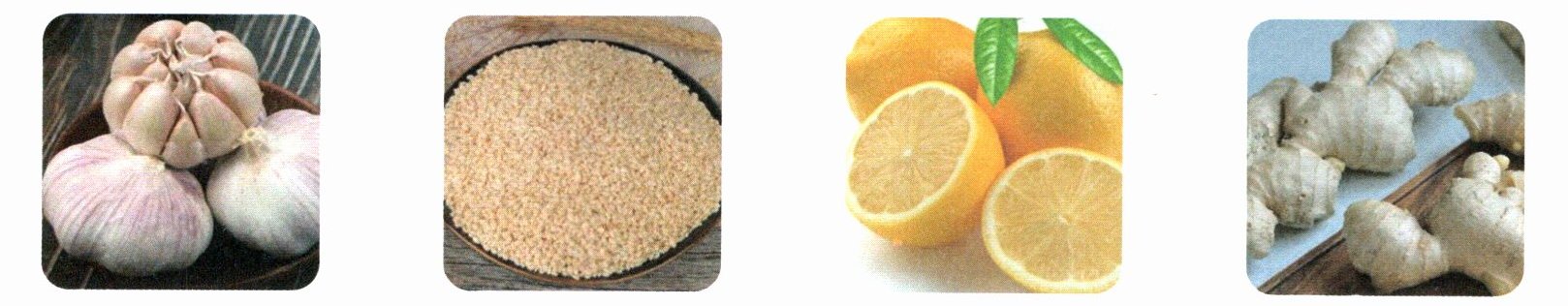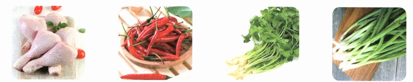1 你认识下面这些食材吗?将食材清单中的序号填在对应图片下的括号里。