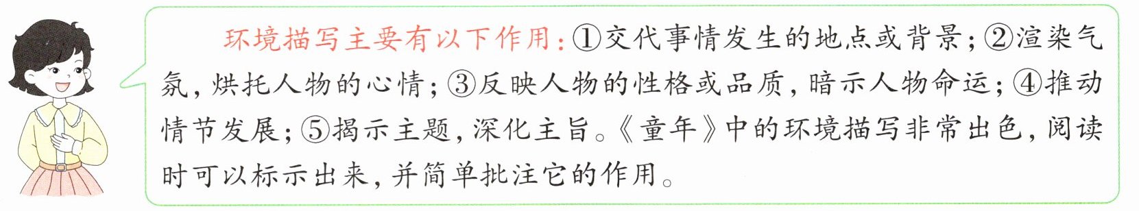 4细腻的环境描写是《童年》这部自传体小说的精妙之处, 品读下面这个片段中描写环境的文字,体会环境描写的作用。