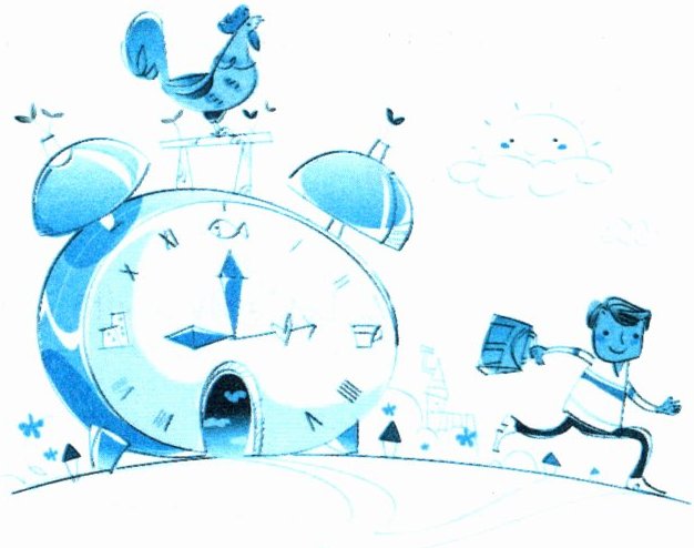 We can tell time by a clock or by a watch. A clock is big and it is usually on the wall or on the table. A watch is small and we can put it in the pocket or wear it on the wrist! A clock or a watch usually has a round face. It has two hands, a long one and a short one. The long one is minute hand (分针) and the short one is hour hand (时针).