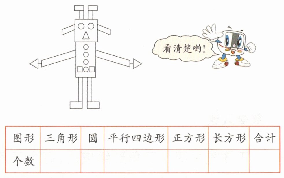 |图形|三角形|圆|平行四边形|正方形|长方形|合计|