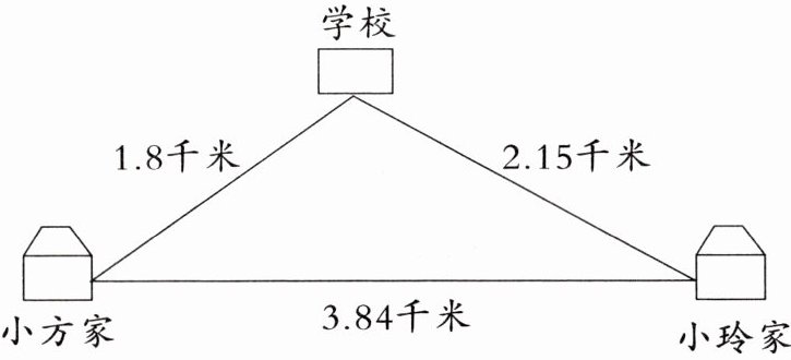 千米的路。(2) 小方家和小玲家谁家离学校近?近多少千米?