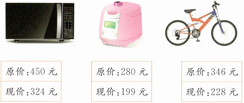 2. 现在买一个电饭锅和一辆自行车比原来便宜$199$元。