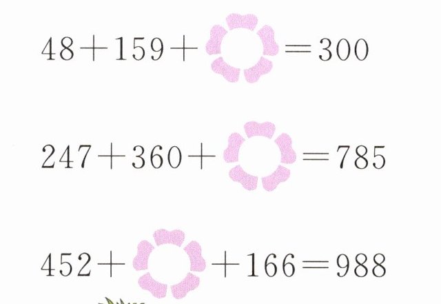 1. 对于$48 + 159+$ $=300$,先计算$48 + 159 = 207$,再用$300 - 207 = 93$。