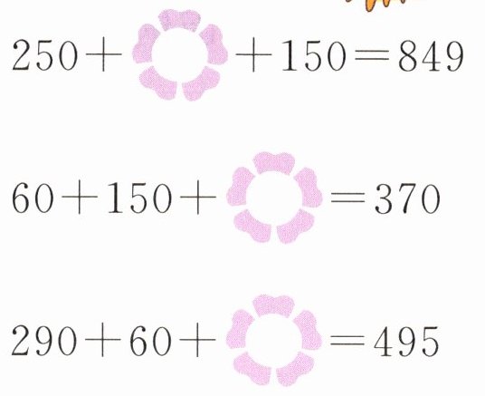 4. 对于$250+$ $+ 150 = 849$,先算$250 + 150 = 400$,接着$849 - 400 = 449$。
