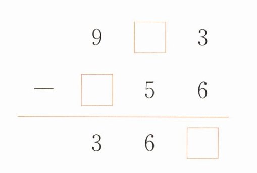 2. 对于减法竖式$9\square3-\square56 = 36\square$: