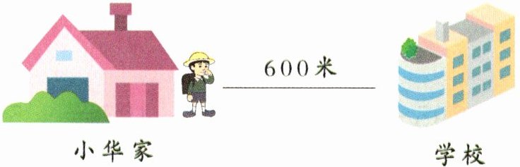 4. 小华家离学校600米。有一天早晨他上学,从家出发走了50米后,发现忘了带语文书,又回家取书。这一天早晨他从家到学校共走了