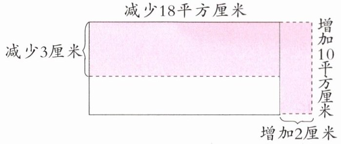 从图上可以看出:长增加2厘米,面积就增加10平方厘米,说明原来长方形的宽是10÷2=5(厘米);宽减少3厘米,面积就减少18平方厘米,说明原来长方形的长是18÷3=6(厘米)。所以原来长方形的面积就可求了。】