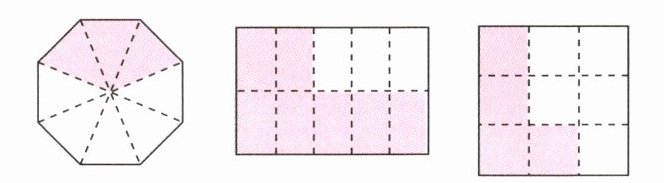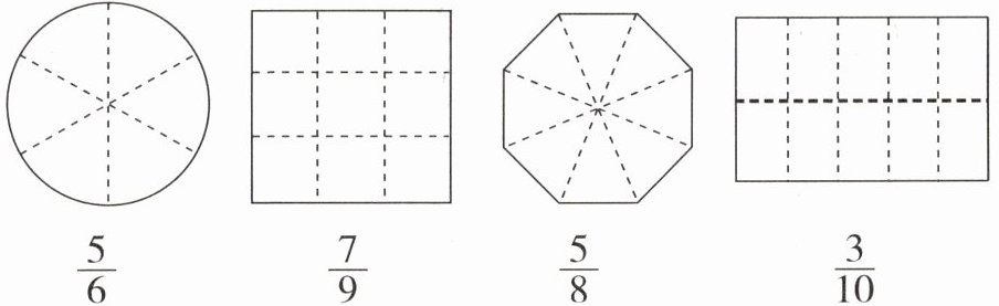 一 用分数表示下面各图的阴影部分。