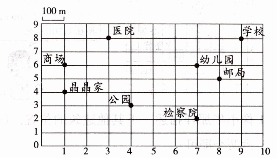 1.学校的位置可以用$(9,8)$表示,检察院的位置用(____,____)表示。
