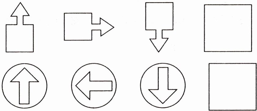 四 按照图中的规律旋转下去,后面的方格中应画什么?