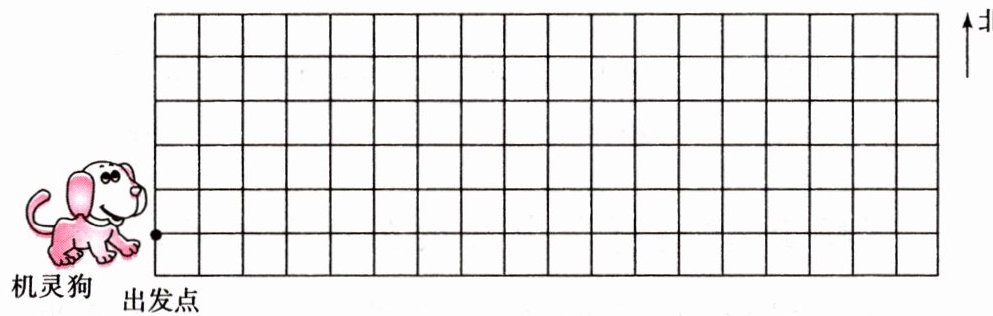 机灵狗送信的路线是先向北走4格,再向东走6格,接着向南走2格,最后向东走5格到达送信的地方,请在图上用●表示出机灵狗要去的地方。